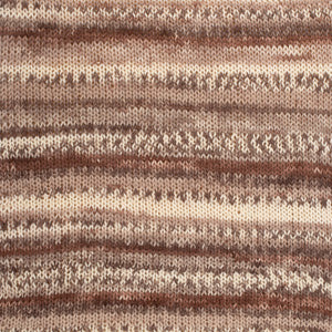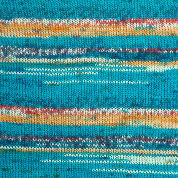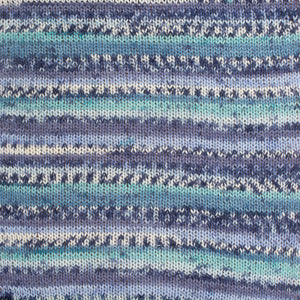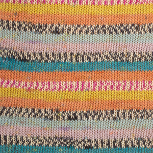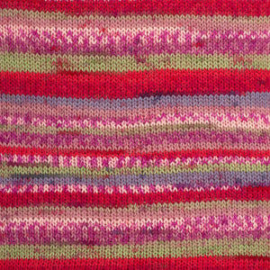 Die Farbmuster zeigen das Muster, das sich ergibt, wenn Sie mit einer kleinen Maschenzahl stricken wie z.B. bei Socken. Bei Projekten mit anderer Breite ergibt sich eine andere Optik.