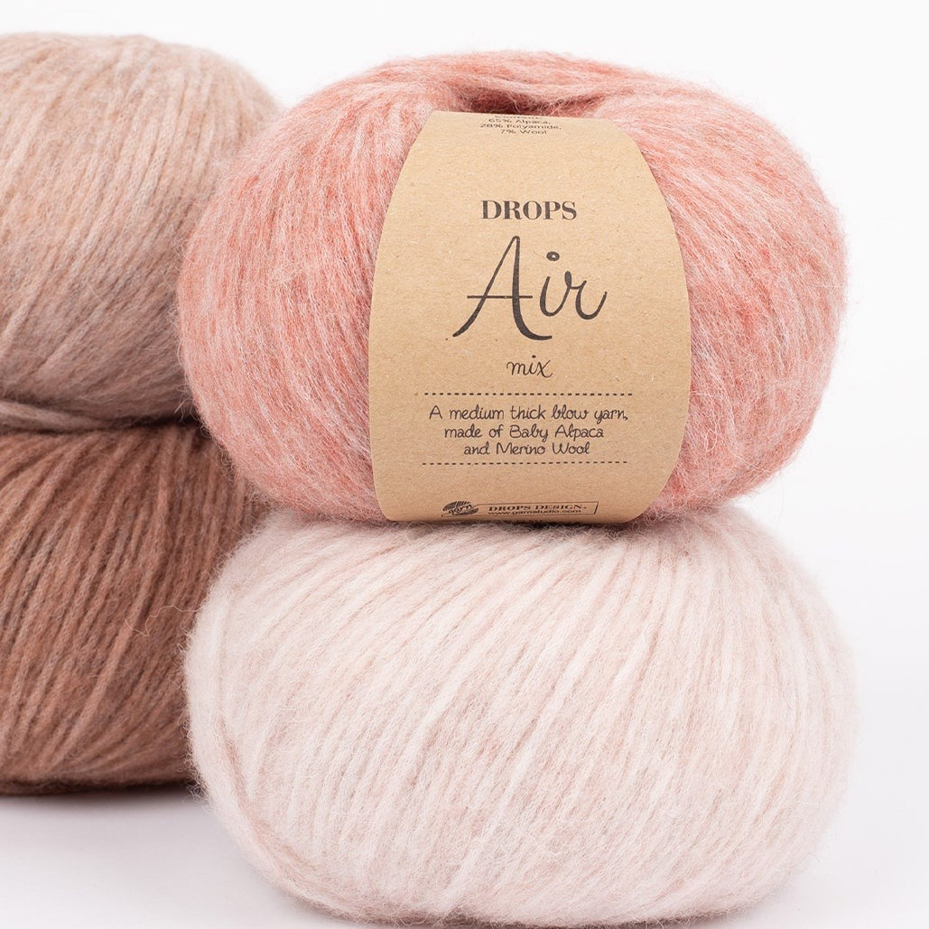 Το DROPS Air είναι - όπως υποδηλώνει το όνομα - ένα ελαφρύ και αέρινο νήμα. Είναι πολύ φιλικό προς το δέρμα και επομένως ιδανικό για πουλόβερ, μπουφάν και αξεσουάρ. Τα δομημένα σχέδια και τα σχέδια καλωδίων είναι ιδιαίτερα αποτελεσματικά.